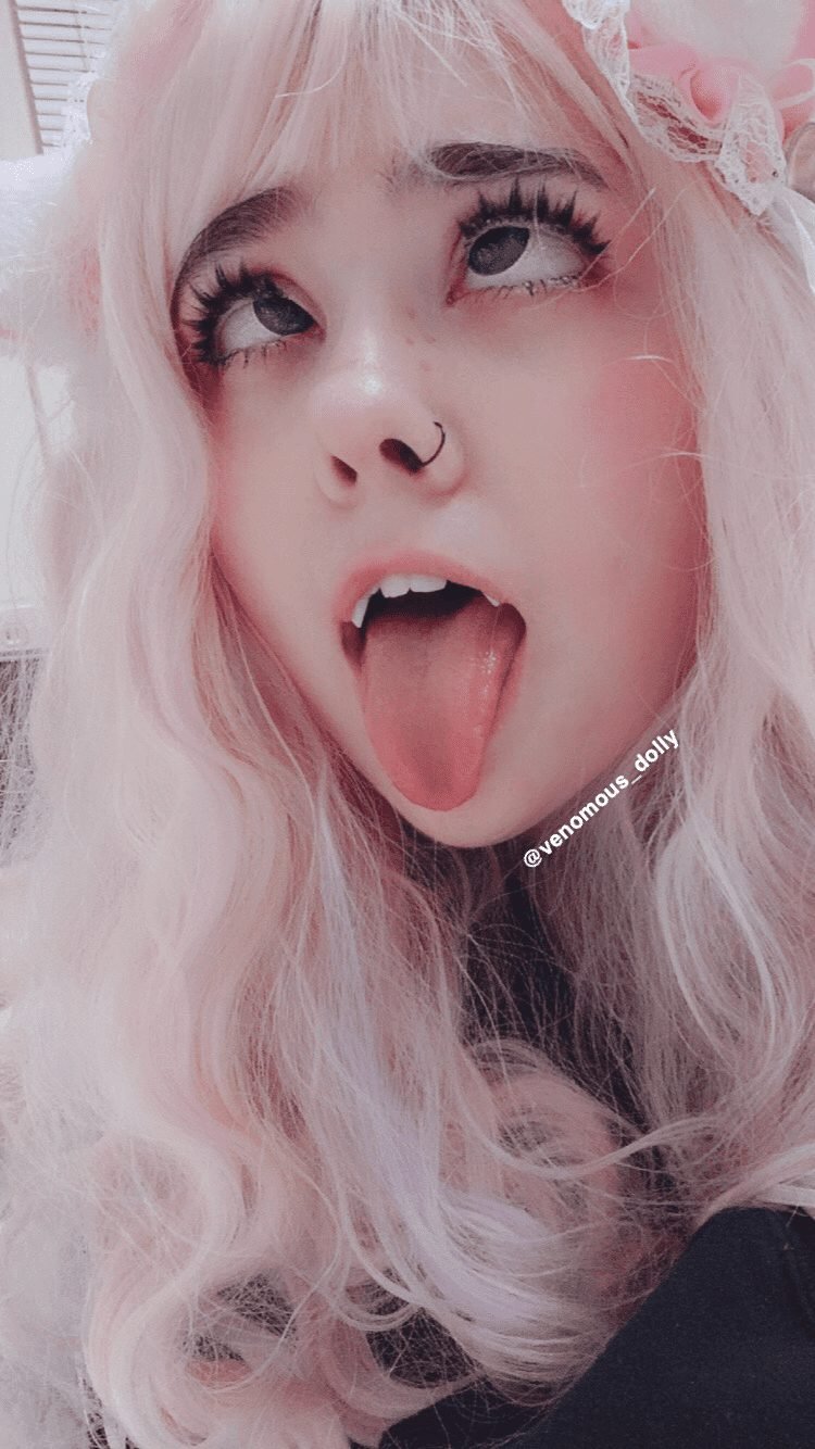 Cute vampire with beautiful eyes and pretty pink hair squinting.
