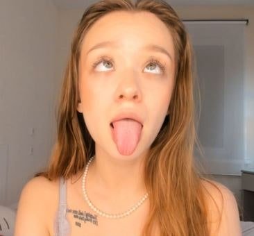 This little Japanese girl makes an ahegao face with her big tongue. 😛