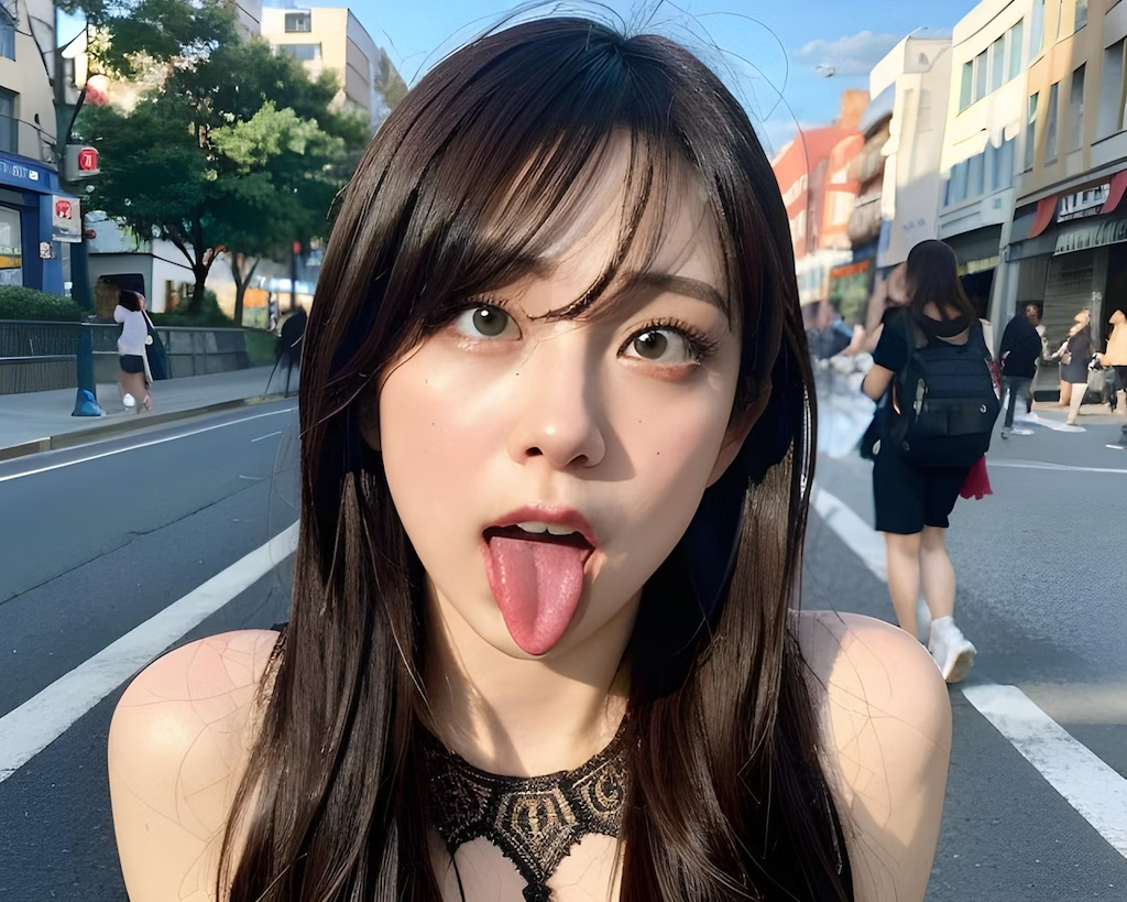 Ahegao face by famous Riley Reid with an effect, she squints well!