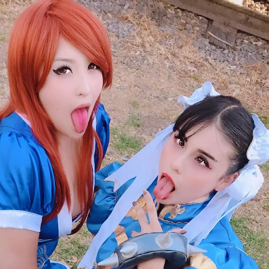 Social networks star Amanda Cerny doing drooly ahegao face.