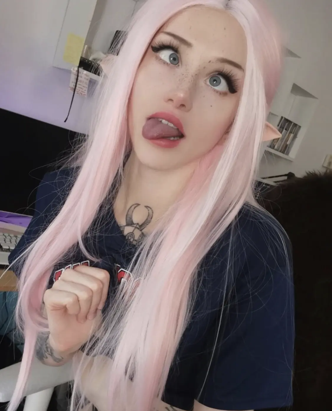 OF chick Lana Starjuice doing ahegao face in elf mode.