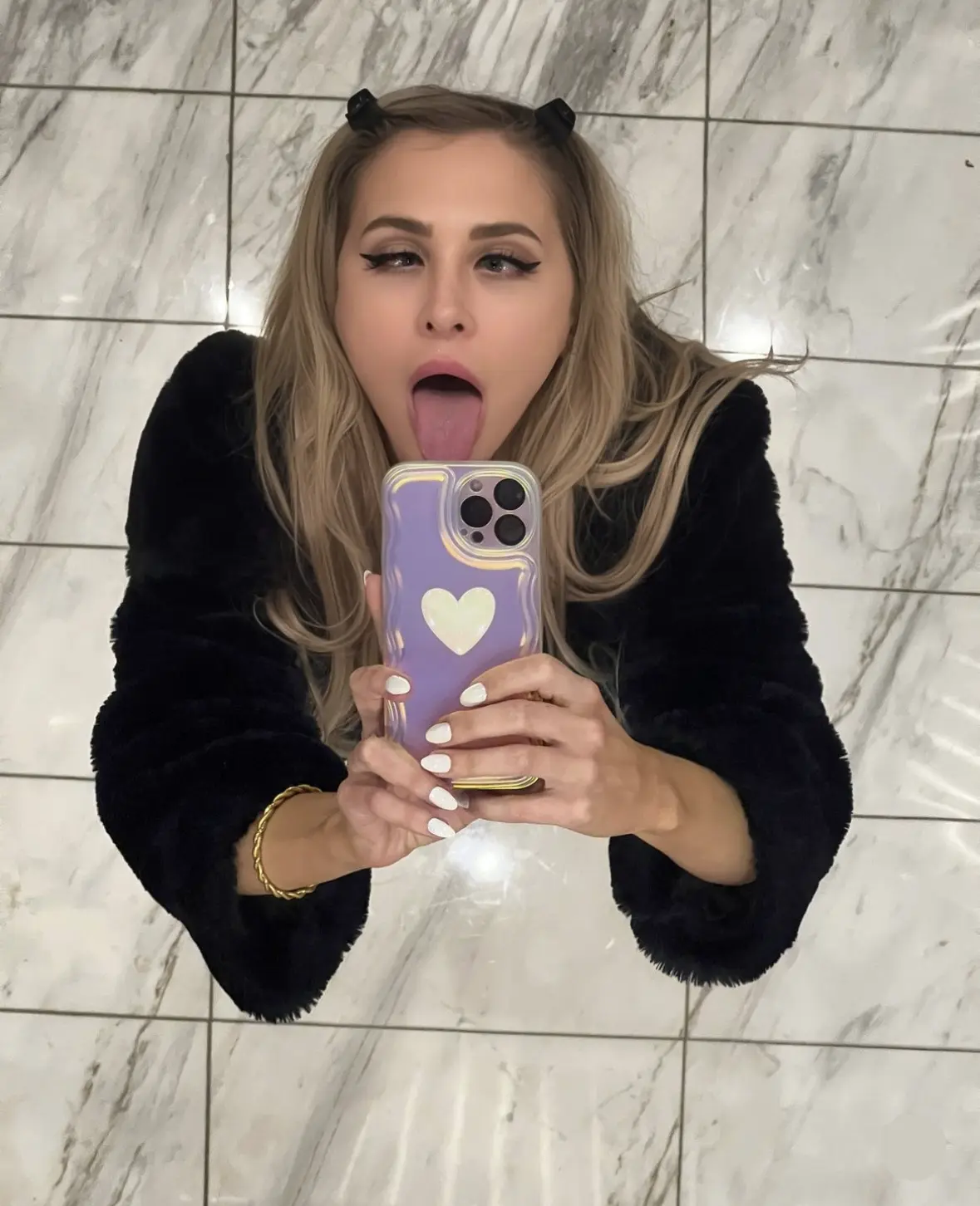 Porn model Alix Lynx doing ahegao face porn in mirror.