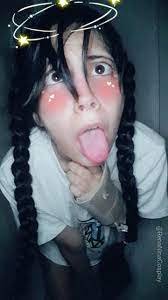 Cute girl with two pigtails makes an ahegao face with an angel effect. 👼