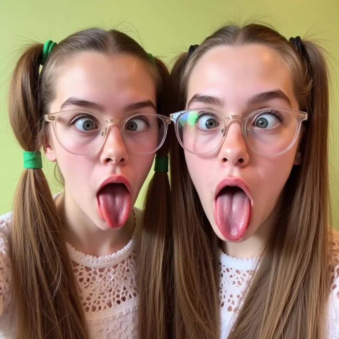Energetic Pose with Tongue Out and Squinting Look