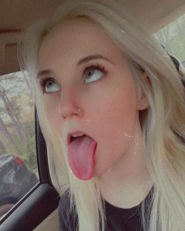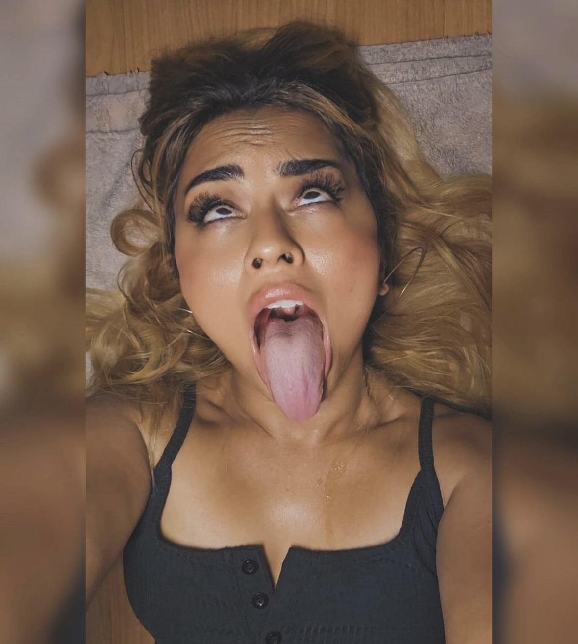 Instagram girl Tabycatxoxo doing ahegao porn with her big tongue.