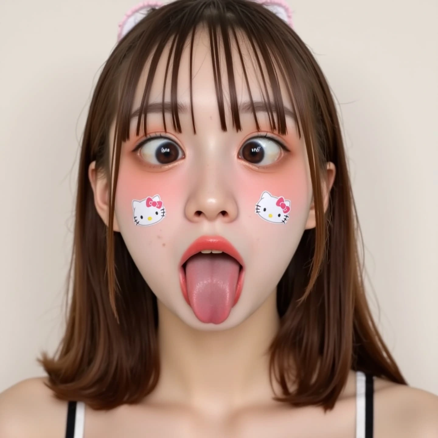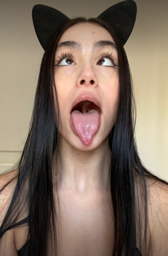 Cute US girl doing drooling ahegao face with her kitty ears.